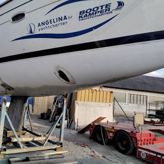 Kalimero sem pripeljal v Ljubljano z namenom popolne obnove kar je bilo mogoče z domačim podjetjem Team Transport d.o.o. http://teamtransport.si/ . V prihodnjih mesecih imam namen obnoviti trup pod vodno gladino, navijalec jadra, navijalec genove (rolflok po domače), navigacijsko opremo in druge sprotne podrobnosti.